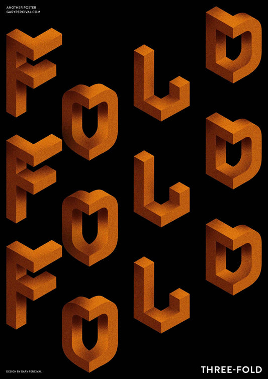 Three-Fold – 3D Typography Poster in Orange & Black | Modern Abstract Wall Art